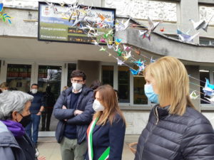 Il lavoro è stato realizzato da tutti gli alunni della secondaria Luini ed è ispirato alla leggenda giapponese delle mille gru di carta, per promuovere un auspicio di pace è stato rispettato un minuto di silenzio in ricordo di tutte le vittime del conflitto russo-ucraino.